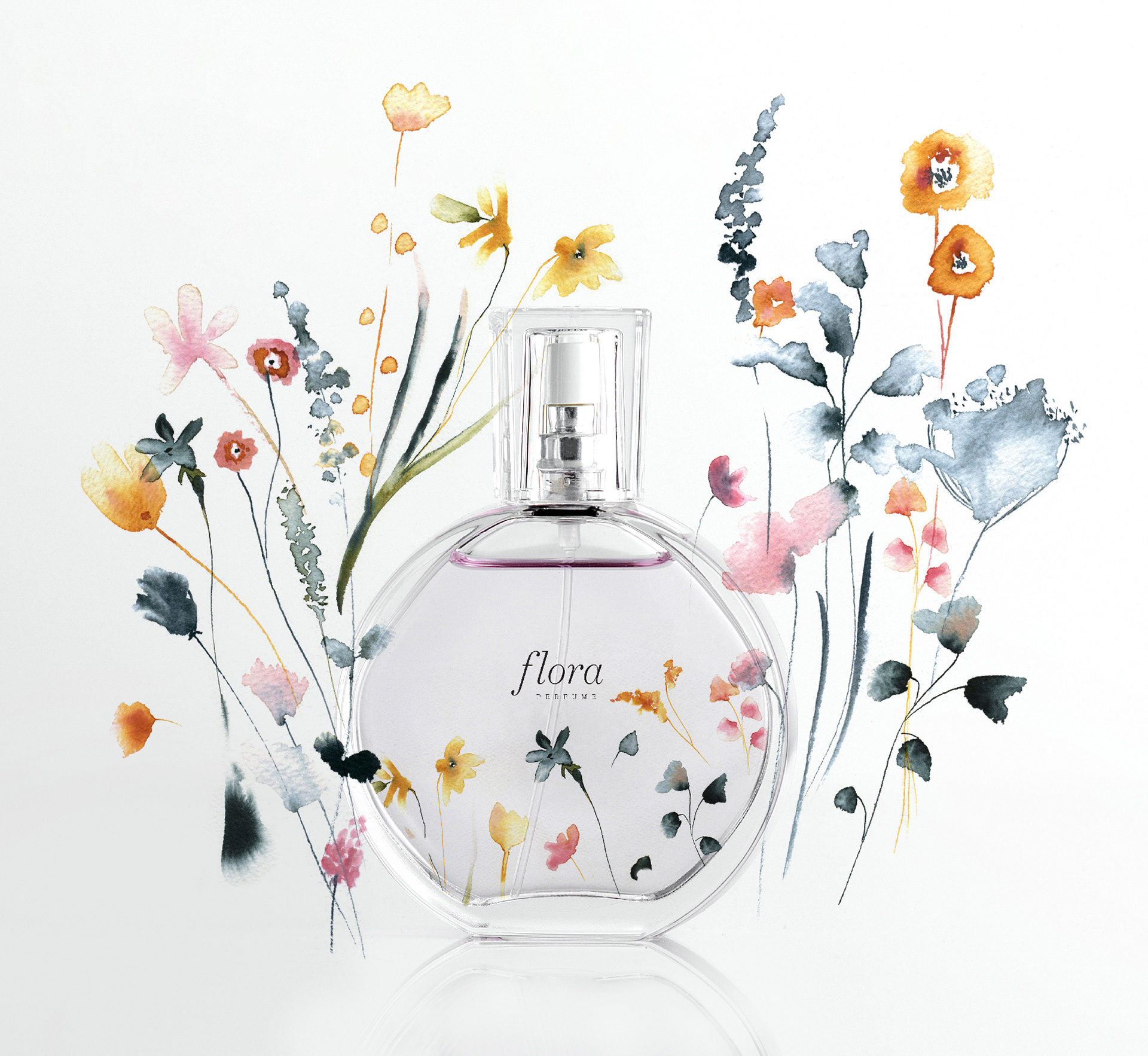 Wildflowers painted with ink and watercolors for the Flora fragrance packaging—featuring delicate, free-flowing designs that capture natural beauty, elegance, and the essence of blooming fields.